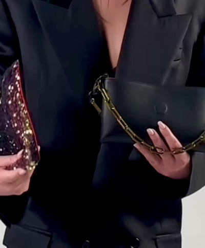 Sur la pochette Gemma , il transforme l'accessoire en bijou de style : à la fois festif et raffiné, parfait pour illuminer un look de soirée ou rehausser une tenue plus minimaliste.